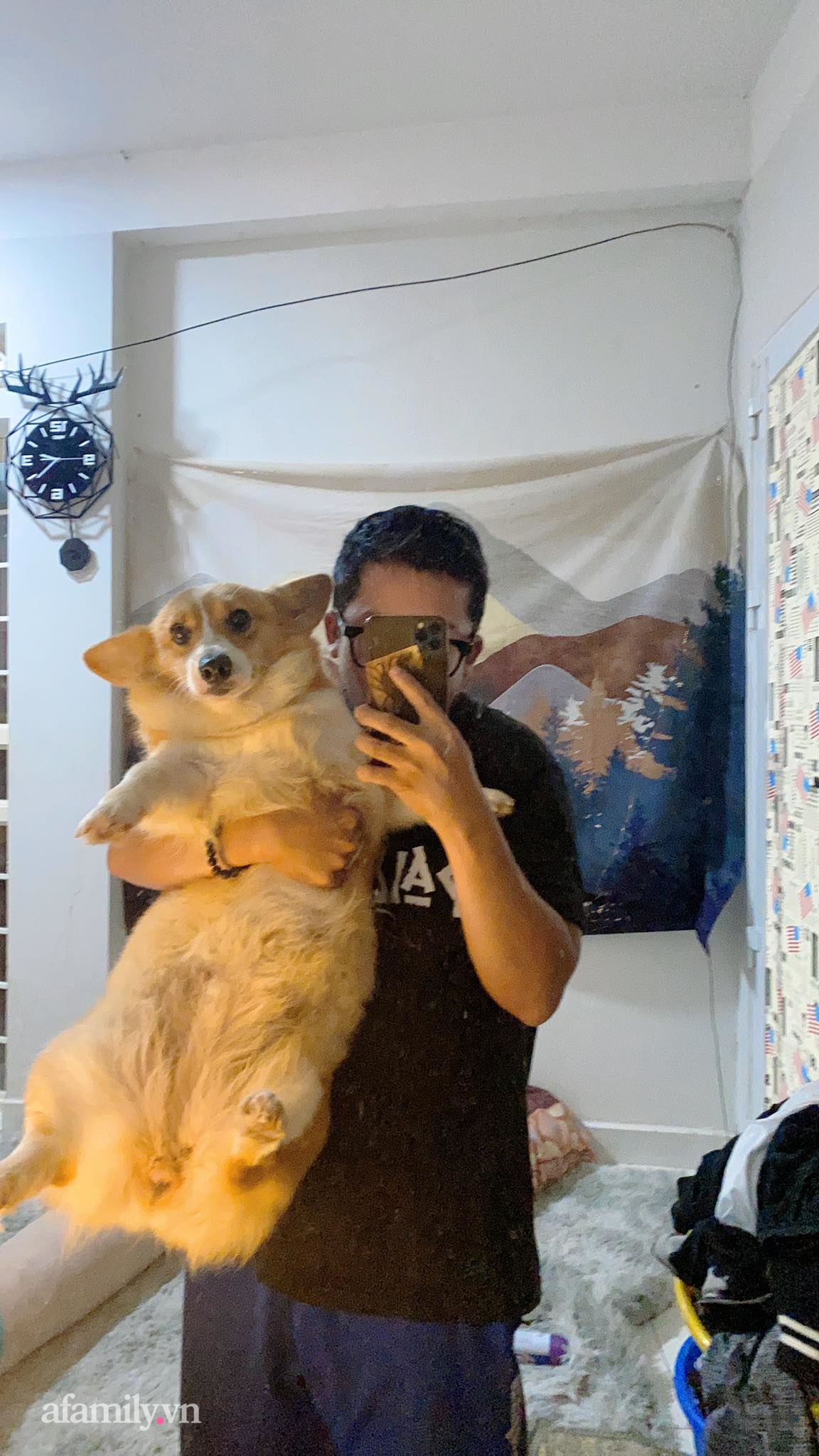 Cô chó Bông cũng nhanh chóng trở thành tâm điểm được thả tim rầm rộ trên mạng vì quá cute. Bông giờ đây đã lớn, rất thích được cưng nựng và đi dạo mỗi buổi chiều, ăn rất nhiều và tăng lên tận... 16kg.