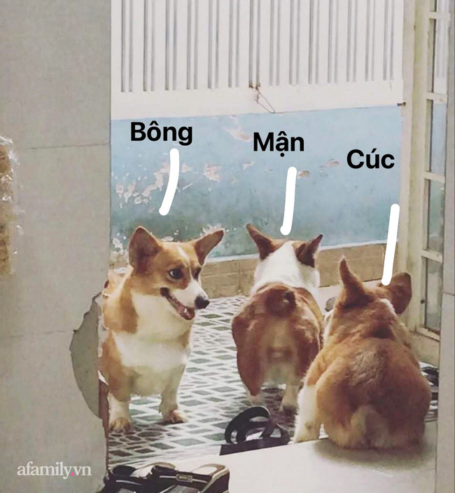 Bông là cô chó giống Corgi xinh xắn, được Vinh mang về nuôi từ 4 năm trước cùng với 2 bé Corgi khác tên Cúc và Mận. Tuy sở hữu cái tên dịu dàng nữ tính nhưng Bông lại nghịch ngợm vô cùng. Một ngày xấu trời nọ, nhân lúc mọi người trong nhà không để ý, Bông đã lôi được chiếc sổ hộ khẩu ra và... cắn xé tan tành. Kết quả, Bông khiến cho cả cậu chủ lẫn 2 người bạn Cúc Mận bị đuổi ra khỏi nhà ngay lập tức!