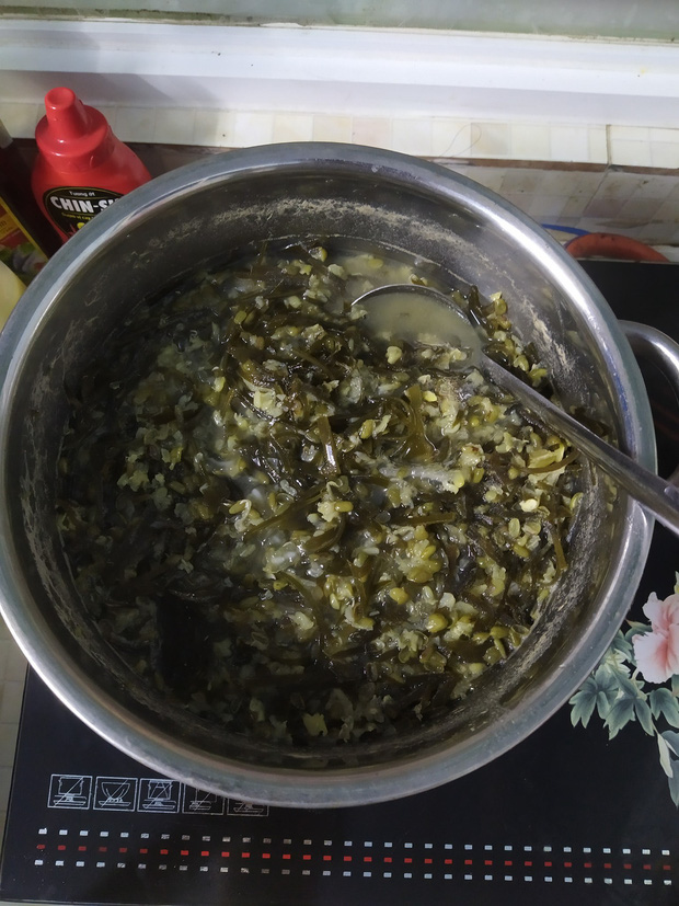 - Trông không đẹp mặt như ngoài hàng thôi chứ có gì đâu mà chê. Chỉ cần cho ít cái lại, nhiều nước lên, đậu xanh nấu chín hẳn rồi mới cho rong biển vào là ok thôi. Thay vì chụp ảnh chê vợ nấu dở thì xắn tay vào nấu xem có ngon hơn không nào.
