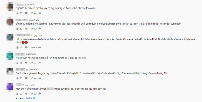Đại Ngọc Trâm trong một phân đoạn còn thẳng thắn cho rằng "sợ nhất là những người mặc đồ bộ, đồ đúng chợ mà vải bèo đi ra ngoài đường, thậm chí còn đi xe máy chạy vòng vòng. Không hiểu tại sao lại mặc được bộ đồ đấy đi ra đường". Triệu Ái Vy, Tuyền Mập cũng tiếp lời cho rằng không chỉ mặc đồ ngủ ở nhà còn đeo găng tay, "thả rông" đi ra đường.