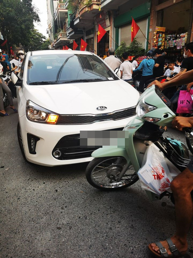 "Thanh niên đi đón con phi thẳng xe vào đường có biển báo cấm ô tô này. Đông quá không đi được nên anh quyết định bỏ xe đi đi vộ vào cổng trường tìm con, kệ xe, kệ cả bà con".