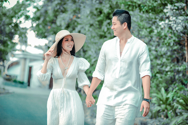 Cô kể về chồng với niềm hạnh phúc và tự hào: "Anh không cần gì hết, chỉ thấy nụ cười của em là anh hạnh phúc rồi. Chưa bao giờ anh làm em buồn vì bất cứ điều gì hết. Anh luôn cho em sự tin tưởng, anh luôn cho em niềm hạnh phúc nhất. Em biết đó là tình cảm anh dành cho em. Tất cả những gì anh dành cho em, em đều trân trọng nó, em đều giữ nó và đón nhận điều đó".