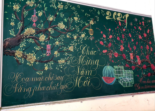 10/02/2021 00:00Chỉ sau 3 tiếng đồng hồ, cô giáo 'hô biến' bảng xanh phấn trắng thành bức hoạ chúc mừng năm mới tuyệt đẹp