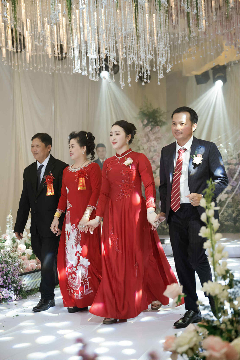 Hình ảnh cô dâu xinh đẹp đeo “vàng lồng vàng” trên cổ khiến nhiều người xuýt xoa. Nhưng gây chú ý hơn cả là hình ảnh mẹ cô dâu dắt tay con gái ra mắt trong buổi lễ gia tiên. Vẻ đẹp quý phái của “chị sui” được nhiều người khen ngợi.