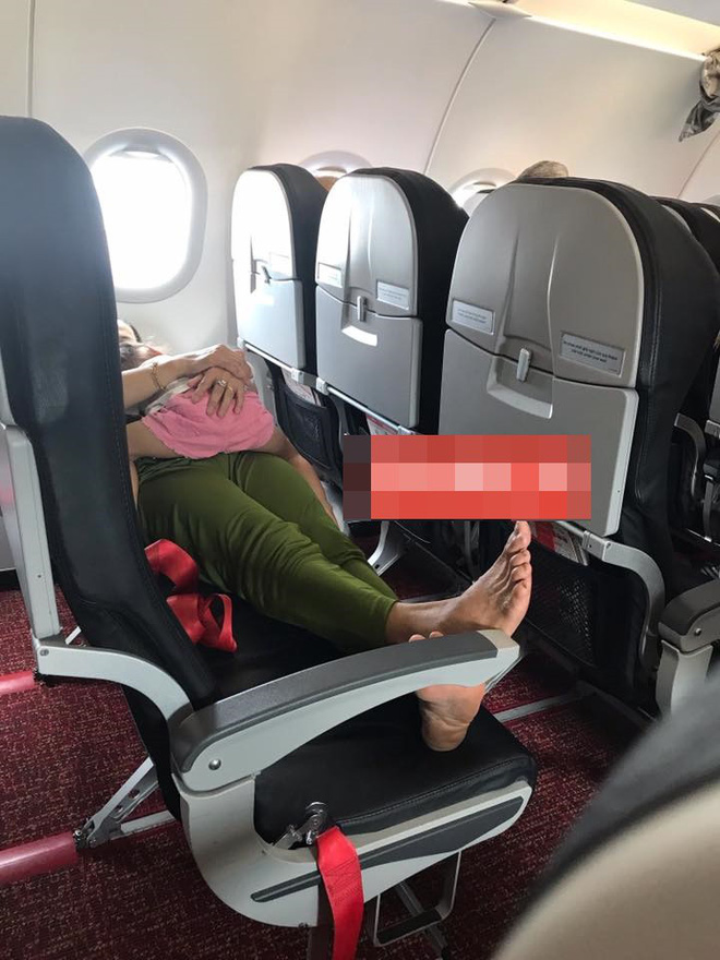 Đây là chia sẻ đầy khó chịu của một thanh niên khi chứng kiến một người phụ nữ nằm dài trên ghế máy bay. Vì ôm theo một đứa bé, chị đã để con trên bụng rồi nằm ở ghế, cho bé nằm lên trên.