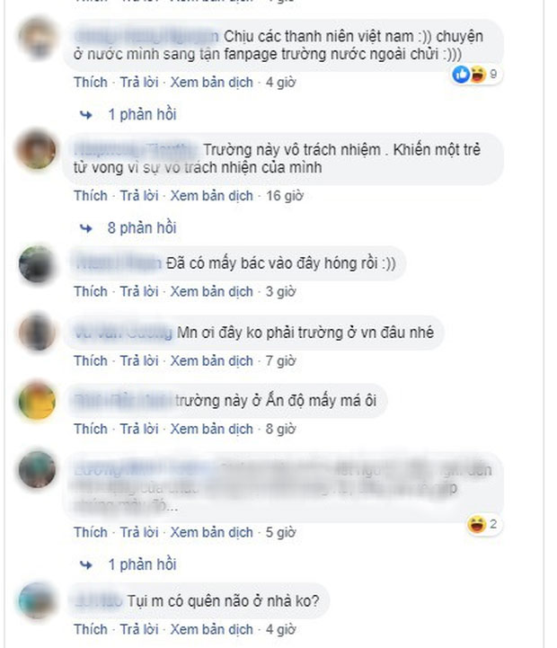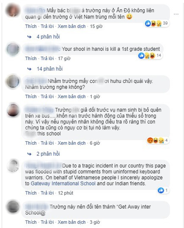 Hàng loạt những lời nóng giận nặng lời như "cái trường giết người", "nên đổi tên thành trường Get Away đi",... Thậm chí có người còn dùng tiếng Anh để chửi cho phù hợp với từ "International" trong tên ngôi trường Ấn Độ mà dân mạng hiểu lầm. May thay bên cạnh đó, cũng có không ít người nhận ra dân mạng Việt đang ném đá sai, nhanh tay chia sẻ vài thông tin nhắc nhở với hy vọng mọi người không tiếp tục "lầm đường lạc lối" nữa.