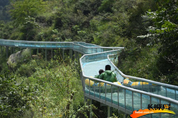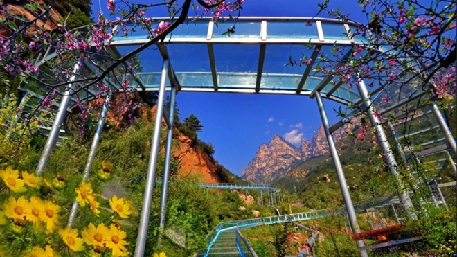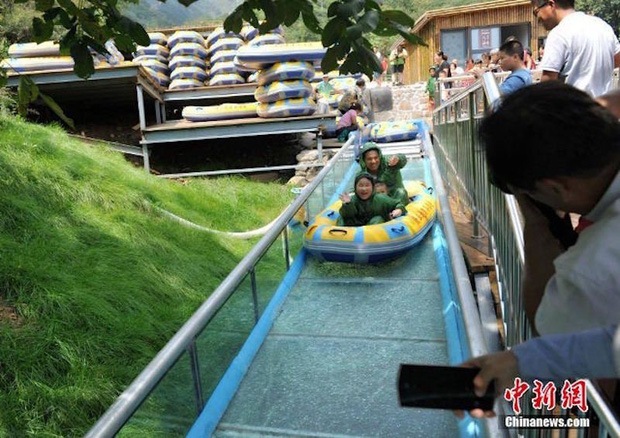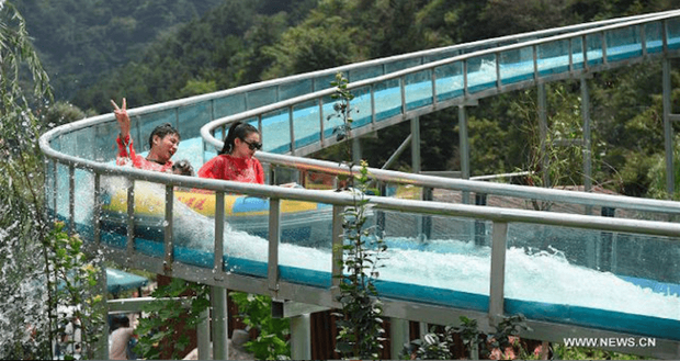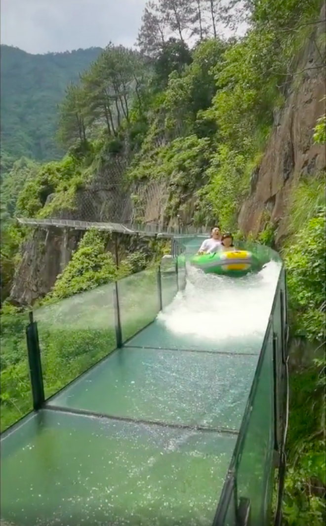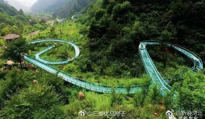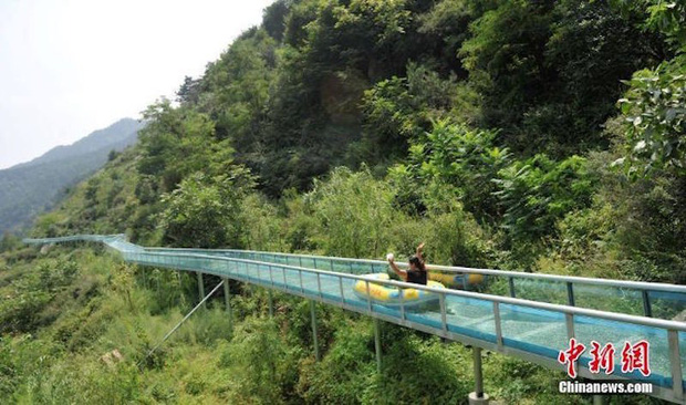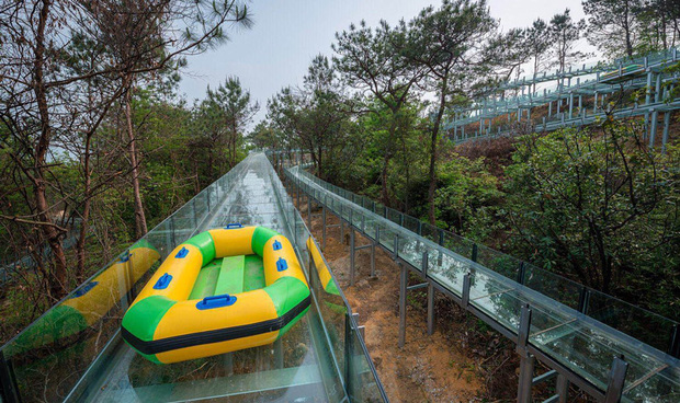 Được biết, công trình này nằm ở ngọn núi Lao Quân, huyện Loan Xuyên, tỉnh Hà Nam, Trung Quốc. Thực chất, nó đã được khai trương từ tháng 8/2017. Ngồi trên chiếc phao đi qua máng trượt bằng kính này, du khách có thể trải nghiệm tốc độ không hề kém cạnh gì… tàu lượn siêu tốc.