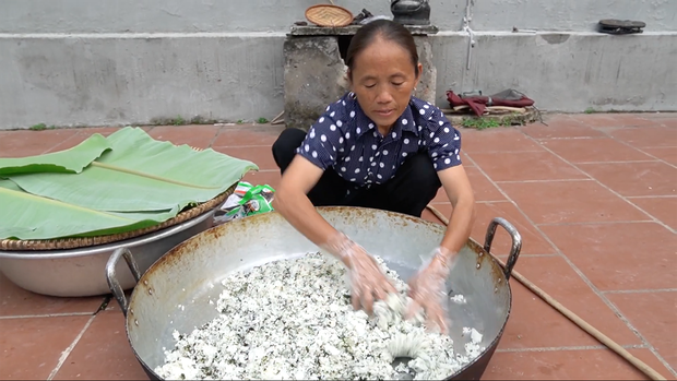 Trong clip mới nhất này, bà Tân làm đĩa cơm nắm trộn rong biển và trứng cuộn rong biển Hàn Quốc siêu to khổng lồ.
