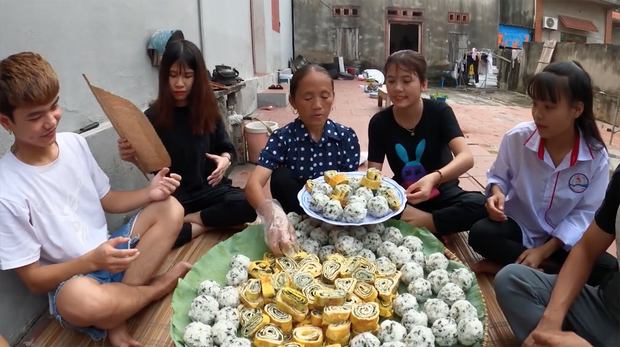 Nếu để ý kỹ một chút, đến đoạn giữa clip thì phần phụ đề tiếng Anh trong clip của bà Tân bỗng dưng... biến mất. Nhưng thôi, tạm bỏ qua phần đó đi, hãy chú ý đến mâm cơm siêu to khổng lồ ăn kèm với trứng cuộn này đi, cũng hấp dẫn phết đấy chứ. Cứ nhìn cách các con cháu của bà Tân ăn cũng thấy rồi này.