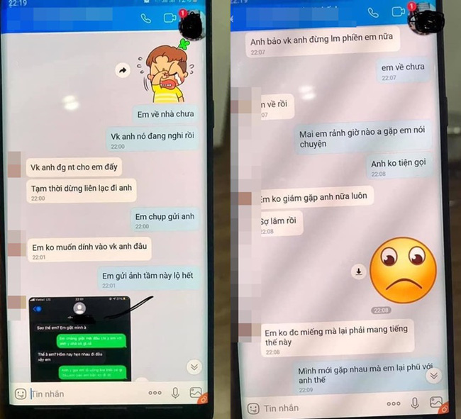 Kèm theo bài viết là ảnh chụp đoạn hội thoại của cả hai. Kẻ thứ ba thừa biết đối phương có vợ vẫn đâm đầu vào. Để đến bây giờ, khi mọi sự đã rồi thì mới bắt đầu bối rối, lo sợ.