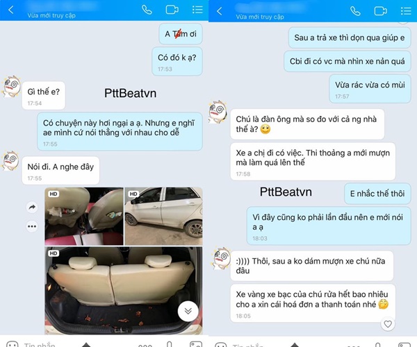 "- Có việc này hơi ngại anh ạ nhưng em nghĩ anh em mình cứ nói thẳng với nhau cho dễ. Sau anh trả xe thì dọn qua giúp em, chuẩn bị đi có việc mà nhìn xe nản quá, vừa rác vừa có mùi.