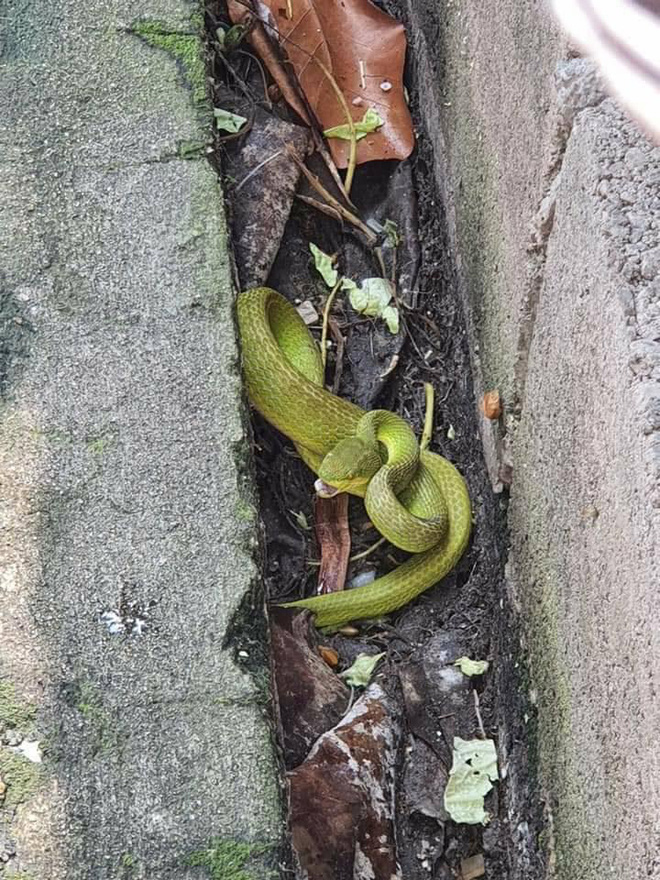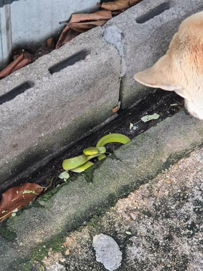 "Đang ở trong nhà thì nghe tiếng em Mic sủa ủm tỏi ngoài cổng. Chạy ra xem thì em đang gầm gừ chiến đấu với một ẻm rắn lục xanh lè, xung quanh là mấy đứa cháu.