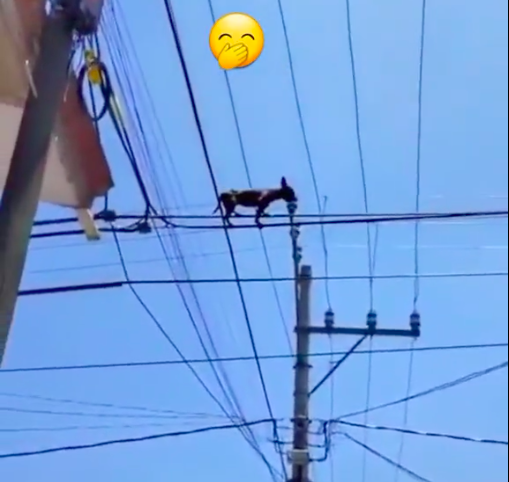 Theo đoạn clip, một chú chó nhỏ đang tập trung giữ thăng bằng, đứng im trên đường dây điện nhỏ cao chót vót. Người chủ nhân ở dưới chỉ biết đứng quay clip trong bất lực. Người đăng tải đoạn clip cũng đặt ra thắc mắc và trao giải cho ai lý giải được vì sao chú chó lại lên trên dây điện.