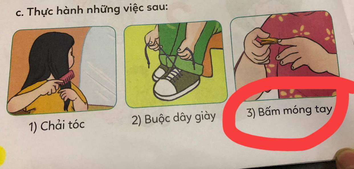 Theo đó, người mẹ này phản ánh về nội dung trong bài tự chăm sóc thân thể, SGK Đạo đức lớp 1. Nguyên văn như sau: "Không biết các mẹ có suy nghĩ giống em không. Bé học lớp 1 mà trong quyển Đạo đức bộ Cánh Diều yêu cầu các con thực hành bấm móng tay. Em nghĩ quá nguy hiểm vì trẻ lớp 1 nhiều trẻ chưa thể tự bấm móng tay được. Em cảm thấy không ổn chút nào các mẹ ạ!"