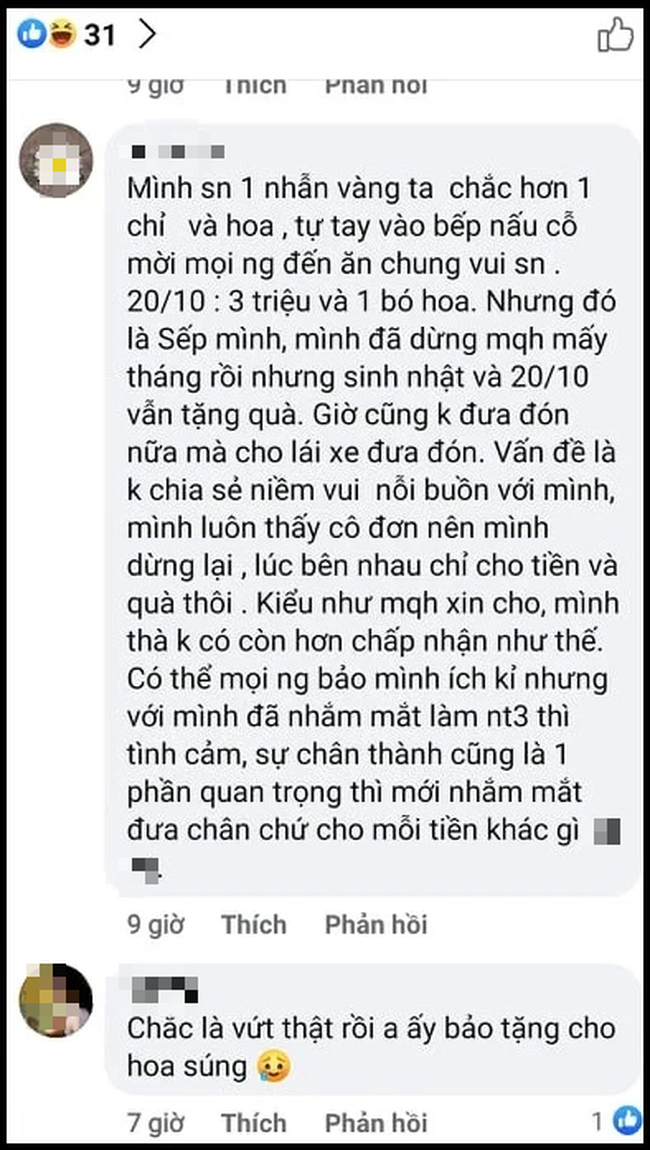 Đúng là tiểu tam cũng có tiểu tam this, tiểu tam that, rất nhiều cô khoe quà nhân tình tặng, người thì hoa, vàng, tiền, người thì tận 10 triệu chuyển khoản.