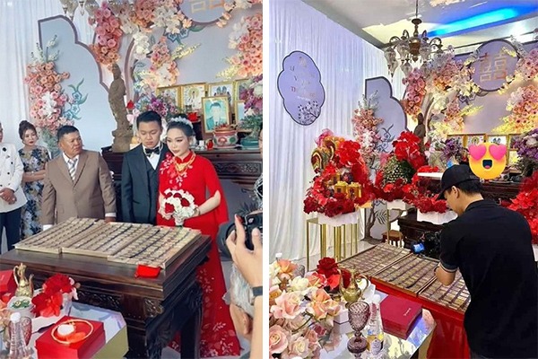 Bên cạnh đó, gia đình hai bên cũng đã tiếp tục tặng thêm số lượng vàng nữa khiến cặp đôi phải "nặng trĩu" trong ngày vui. Tổng cộng, cô dâu chú rể đã nhận được hơn 300 cây vàng trong ngày trọng đại của mình.