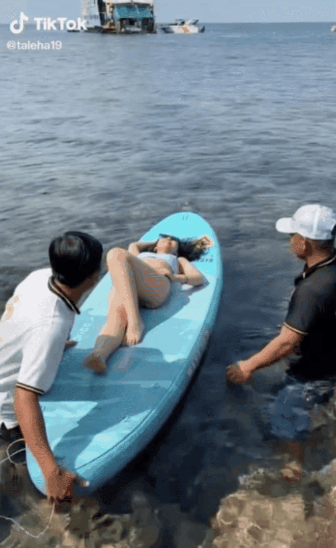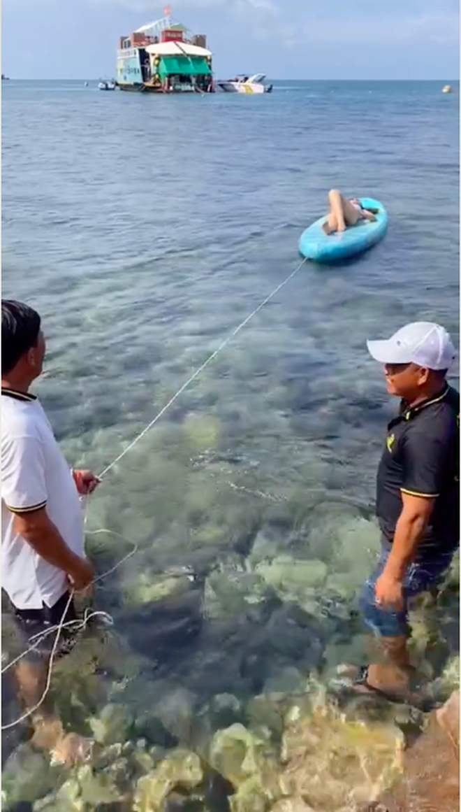 Cụ thể, cô gái và nhóm bạn của mình có dịp ghé thăm Hòn Mây Rút - một địa danh nổi tiếng ở Phú Quốc. Vì mua tour du lịch nên việc chụp ảnh cũng được cả ekip lo từ A-Z. Thay vì chỉ đứng trên bờ hay ngâm mình trong làn nước biển để chụp ảnh, cô gái này lại mặc bikini khá gợi cảm và nằm trên một chiếc phao nhỏ để tạo dáng.