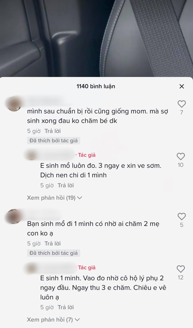 Dưới phần bình luận, người mẹ cũng thoải mái giải thích lí do với mọi người. Theo đó, gia đình này có vợ ở Bình Dương, chồng thì ở TP Hồ Chí Minh nên hiện tại dịch bệnh anh chẳng thể về được. Sau ba ngày sinh mổ thì cô xin phép về nhà sớm.