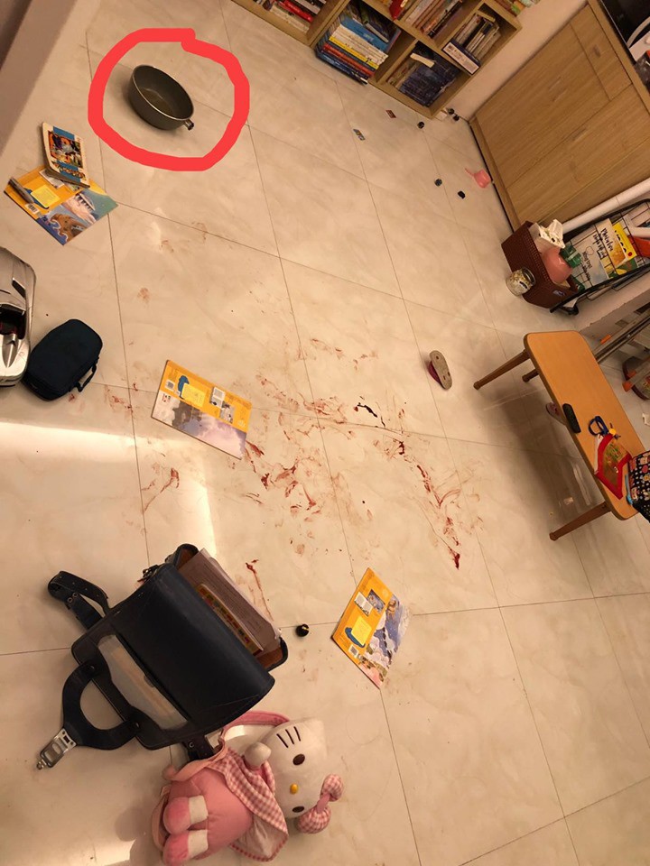 Đàn ông sức dài vai rộng chỉ cần 1 cái tát cũng đủ làm cho người đàn bà xây xẩm mặt mày, chưa kể còn dẫn đến ù tai chóng mặt lăn quay ra mà ngất nữa ý chứ mà đằng này một người chồng (đã ly thân đang chờ toà giải quyết ly hôn) to cao vạm vỡ, nhẫn tâm cầm cả cái chảo để bổ vào mặt vợ đang bế chính đứa con của mình. Khốn khổ thay cả cái đầu của đứa con gái mới 3,5 tuổi hứng luôn cái phang chảo thẳng tay của bố, máu me be bét, đi cấp cứu khâu 5 mũi. Con trai 10 tuổi chạy lại can bố đánh mẹ cũng bị lẳng cho đập đầu vào tường.