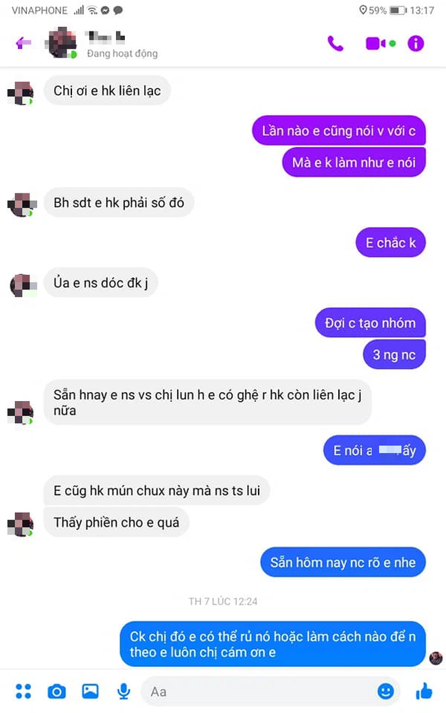 - Chị yêu à, sợ nhầm, mấy thằng đó hay ai gặp con C. đăng em lên như vậy rồi gửi qua ảnh này kia. Hoặc có gì mai chị nói chuyện với anh T. cho rõ ràng rồi chị gọi em.