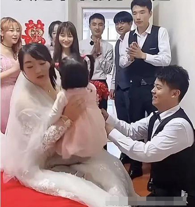 Tuy nhiên, chú rể không hề tỏ ra khó chịu, vẫn tiến hành các nghi lễ đám cưới như bình thường. Cô dâu cũng hiểu ý, đặt con sang một bên rồi nhận hoa cưới. Thế nhưng khi cô dâu đang định cùng chú rể ra ngoài, cô con gái lại nắm váy cô kéo lại, không muốn rời xa mẹ.