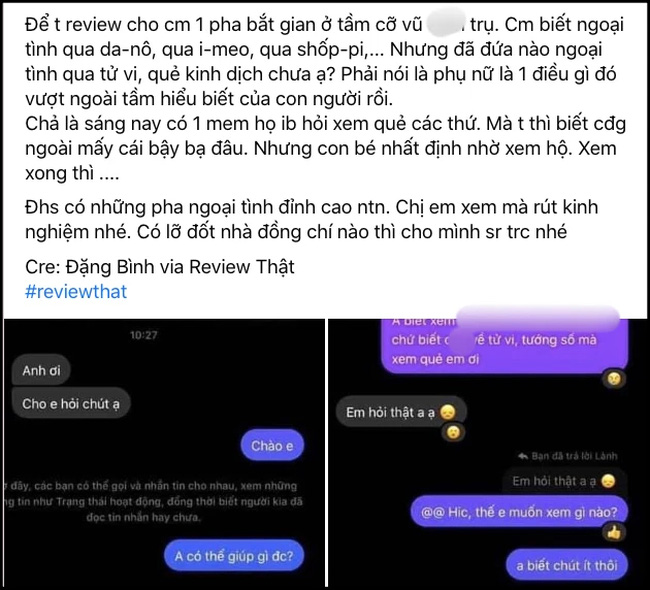 Không thể hiểu nổi tại sao có những pha ngoại tình đỉnh cao như thế này. Chị em xem mà rút kinh nghiệm nhé”.