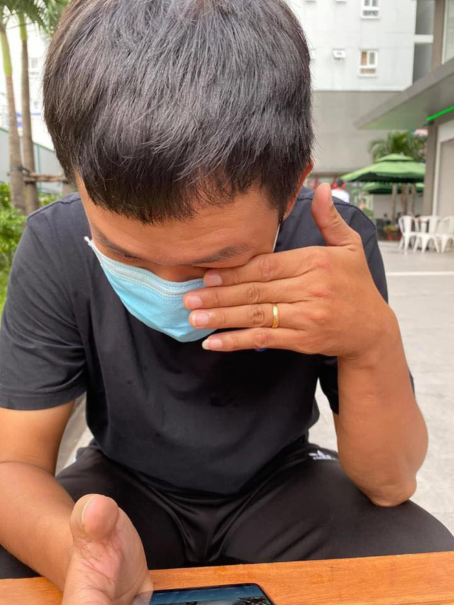 Để thêm phần sinh động, cô đăng kèm bức ảnh chồng đang chùi nước mắt. Anh này khóc đỏ cả mặt vì quá nhớ cô con gái nhỏ.