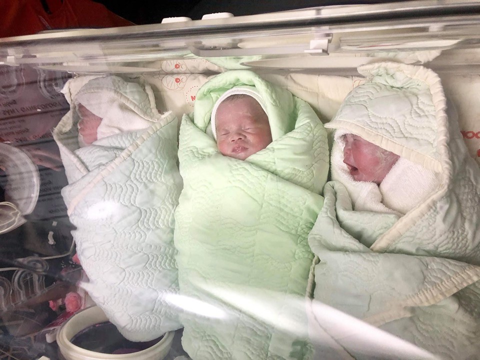 Theo chia sẻ của ông bố trẻ, vợ anh lên bàn đẻ vào khoảng 7h30 sáng nay (18/6), 3 em bé lần lượt ra đời cách nhau chỉ vài phút, trong đó em bé gái được sinh ra cuối cùng. 3 em bé được bố mẹ đặt tên là Táo, Xoài, Dâu, cân nặng cũng xấp xỉ nhau khoảng từ 1,6 - 2kg.
