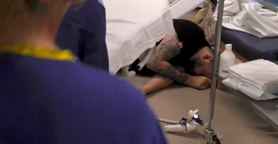 Và hình ảnh một ông bố không rõ vì quá sợ hãi hay quá xúc động mà lăn đùng ra ngất xỉu khi chứng kiến con chào đời đã thu hút đông đảo sự chú ý của cư dân mạng.