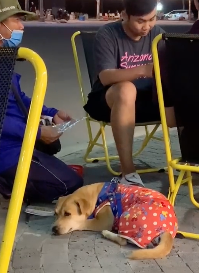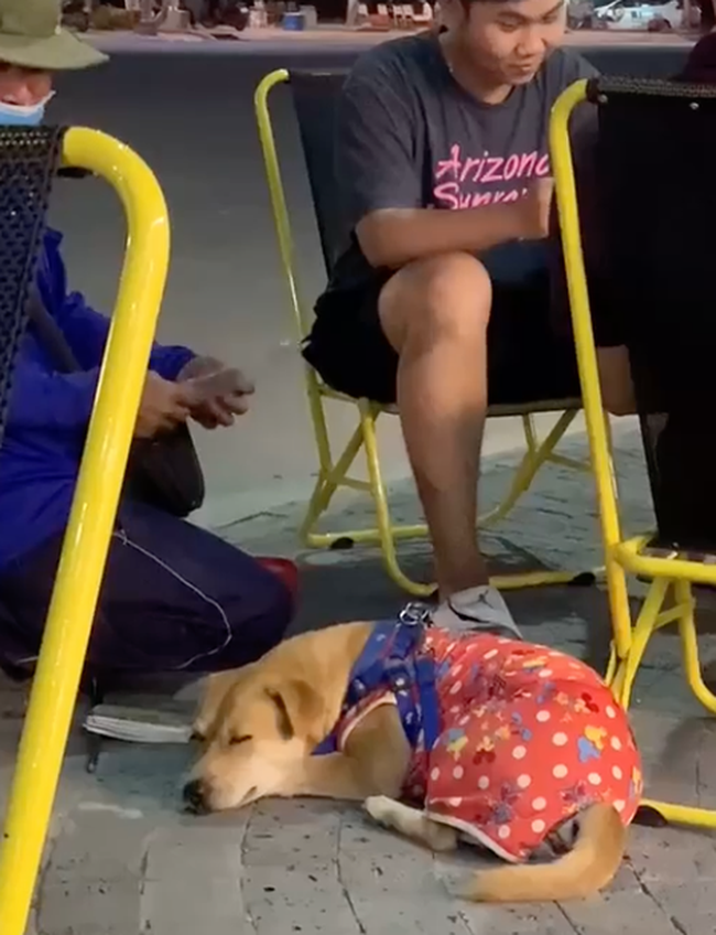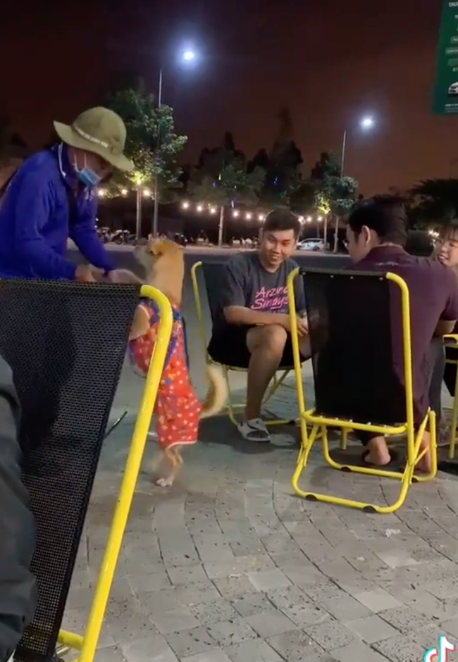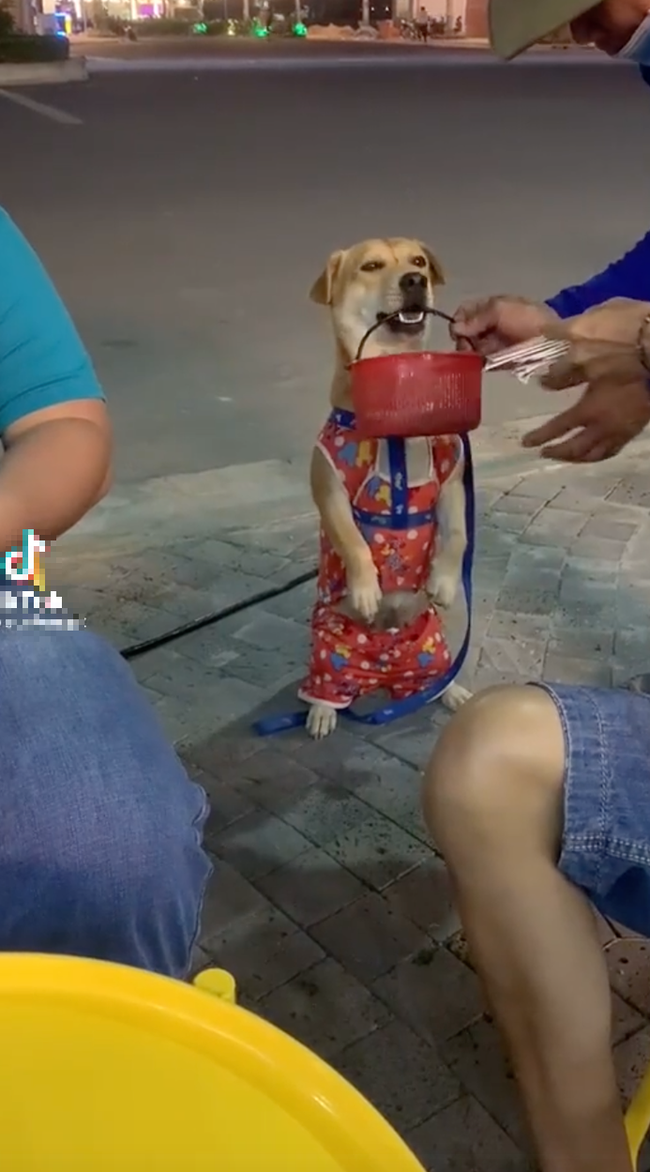 Chú chó được chủ cho mặc bộ đồ đỏ ôm sát đi khắp nơi bán vé số giúp chủ. Điều đặc biệt là tất cả mọi hành động của nó đều tự giác, đến một quán cà phê nào ở ven đường, khi có khách gọi nó liền lập tức đứng bằng 2 chân, mõm ngậm lấy giỏ vé số từ tay chủ sau đó đi mời chào khách, hành động của nó khiến những người chứng kiến bất ngờ và phải thốt ra vô vàn lời khen.