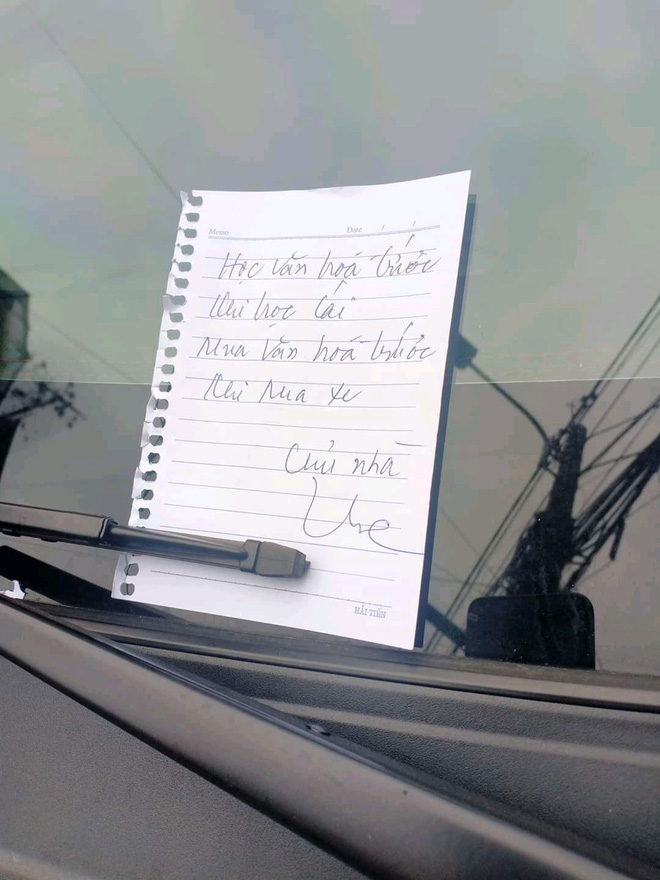 Chủ nhà tỏ ra bức xúc và để lại lời nhắn: "Học văn hóa trước khi học lái. Mua văn hóa trước khi mua xe".