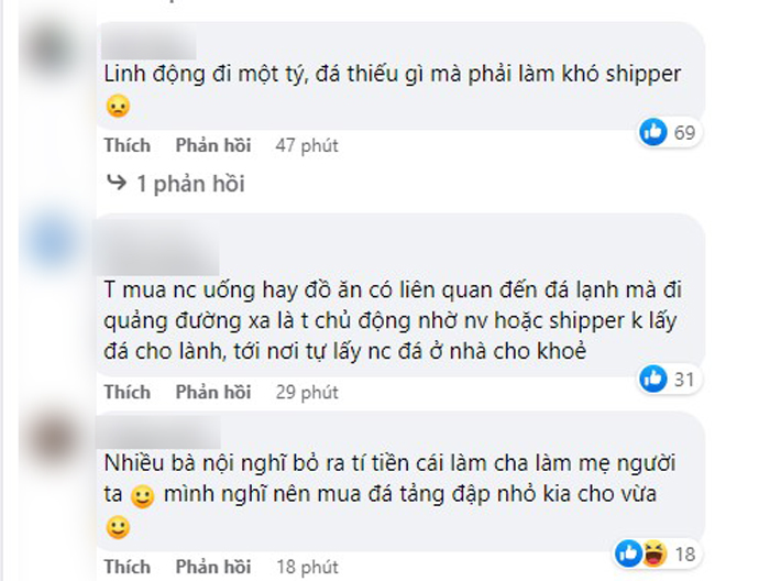 Tuy nhiên cũng không ít ý kiến đi ngược lại, cho rằng khách hàng hoàn toàn có thể từ chối nhận hàng nếu sản phẩm không đáp ứng đủ yêu cầu, như trong trường hợp này là chè mà không có đá thì rất đặc và khó ăn. Việc chủ quán chè đến để "dằn mặt" cô gái hoàn toàn là "làm quá", rằng nếu chủ quán nào cũng không biết phải trái như vậy thì sẽ chẳng có khách nào dám đến ăn nữa.