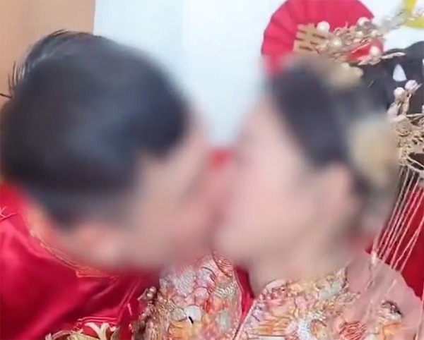 Lúc đầu, phù dâu đã giơ tay phản kháng bằng cách tát chú rể một cái. Đến lần thứ 2, một vị khách đã dùng tay ấn đầu phù dâu vào mặt chú rể để anh ta hôn phù dâu thuận tiện, thành ra cặp đôi chú rể - phù dâu đã hôn môi đến tận 2 lần.