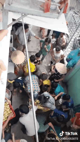 | Người dân xúm vào tranh giành đồ cúng gây nên cảnh bát nháo ầm ĩ trên phố. |
