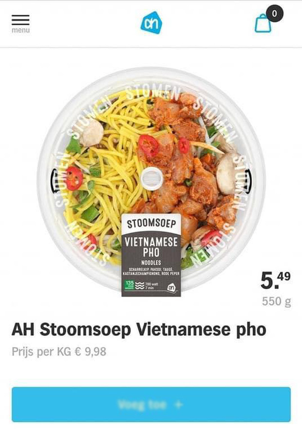 27/02/2021 16:20Chuỗi siêu thị Hà Lan gây phẫn nộ và bị tẩy chay vì đăng bán món phở 'vàng như mì tôm, ăn kèm gà sốt'