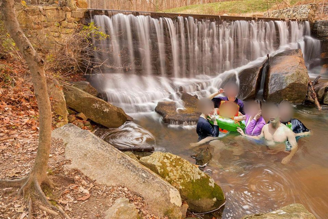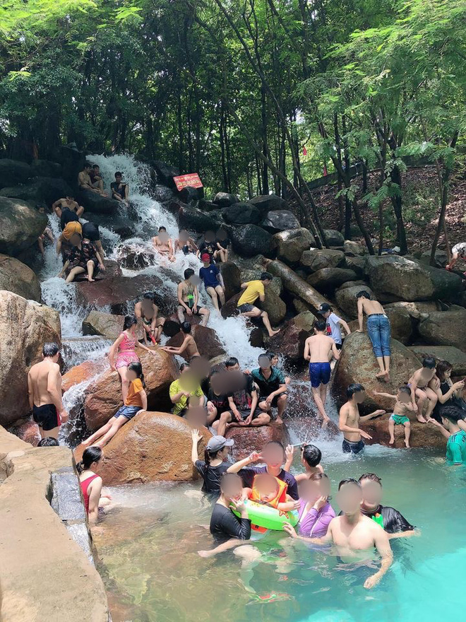 Người phụ nữ hết lời nhờ vả: "Gia đình em đi chơi lễ, nhờ các cao nhân xóa hộ người phía sau. Gia đình em là nhóm 5 người với thằng cu bé xíu nằm trên phao đó ạ".
