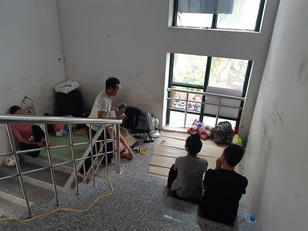 Thời điểm có mặt tại khu cầu thang này, hơn 10 người đang ngóng chờ thông tin người thân ở phía trong. Họ chia sẻ dù bệnh viện có phòng lưu trú và họ cũng đủ khả năng để thuê một phòng trọ ở gần bệnh viện nhưng vì sốt ruột khi người thân đang trong phòng mổ, phòng hồi sức nên họ không muốn đi đâu.