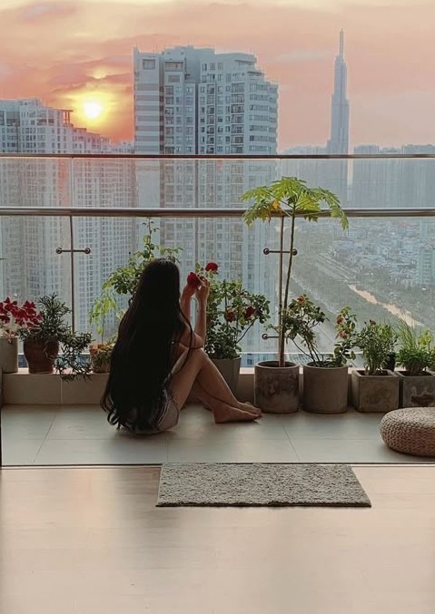 Trước đây, mình còn trồng hoa ở ban công, thi thoảng ra đứng hóng gió ngắm trời ngắm mây chứ từ ngày tầng trên như thế thì dẹp hết, đóng kín gần như 24/7".