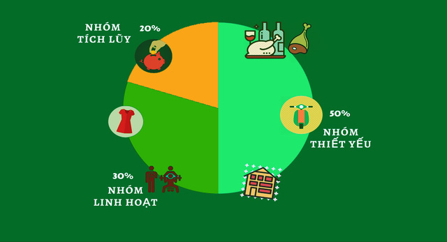 Nguyên tắc “Phương pháp chia ba thu nhập” là gì? Đó chính là chia tiền lương ra làm 3 phần: 1 phần dành cho các khoản chi thiết yếu (chẳng hạn như các chi phí cần chi trong tháng và trong năm; các chi tiêu hằng tháng có thể là tiền thuê nhà, tiền điện nước, tiền chu cấp cho gia đình…; các khoản chi hằng năm phải kể đến tiền thuế, phí bảo hiểm...), 1 phần tích lũy, phần còn lại để chi tiêu cá nhân linh hoạt. Như vậy bạn sẽ không cần phải thống kê chi tiêu mỗi ngày nữa rồi.