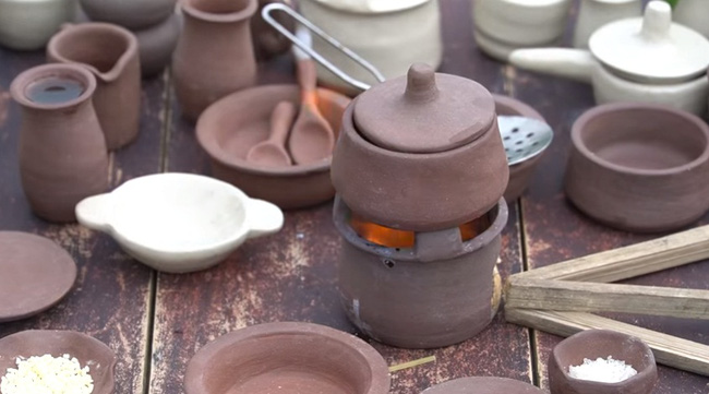 Và bởi dụng cụ quá nhỏ, chỉ như một bộ mô hình nên bà Tân chẳng thể nào nấu trên những chiếc bếp bình thường. Thay vào đó, bà Tân phải dùng đến một loại nguyên liệu đốt tuy khá thông dụng nhưng lại không được khuyến khích dùng nhiều là cồn khô.