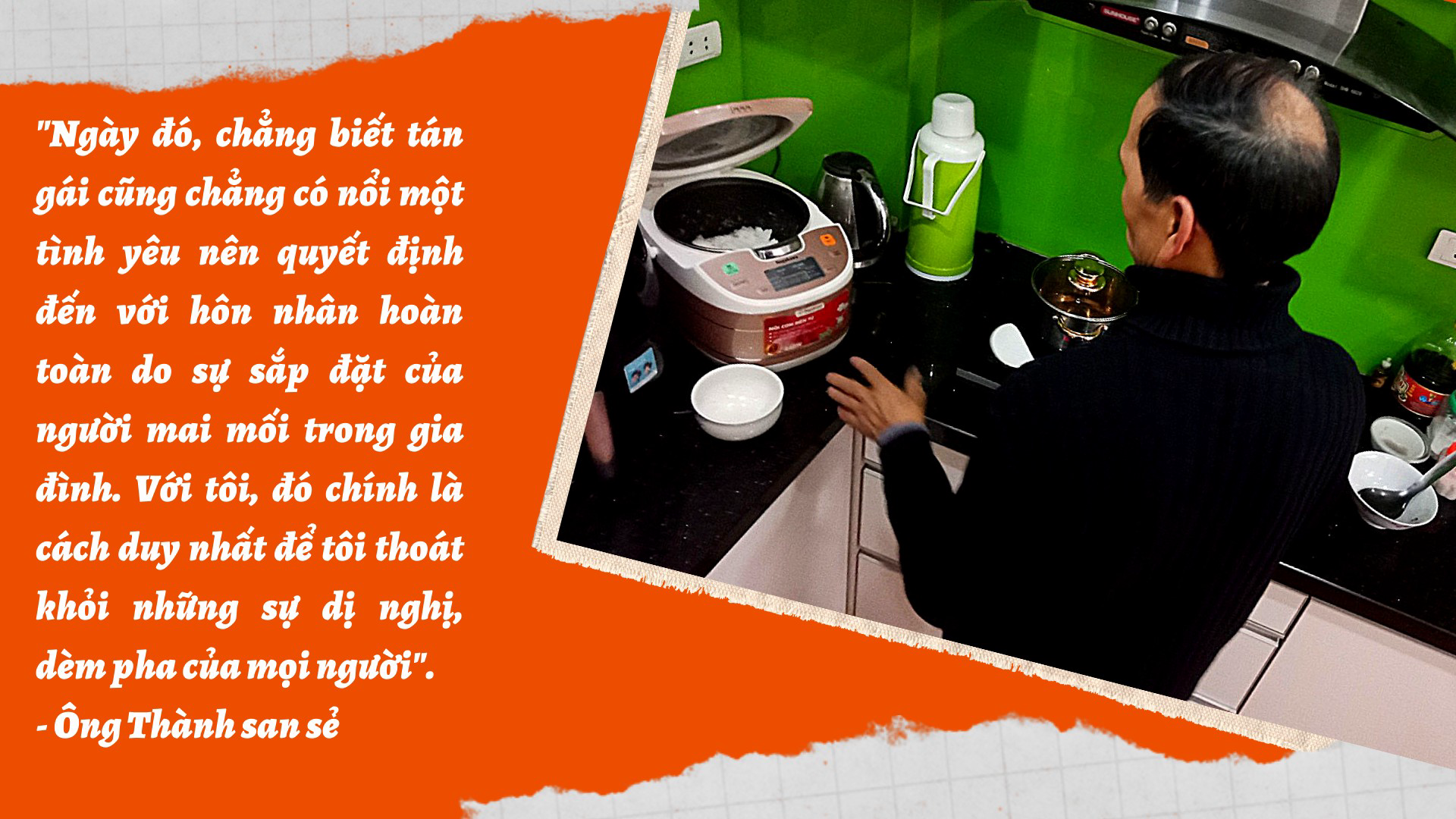 Tâm sự về quyết định lấy vợ, ông Nguyễn Kim Thành nghẹn ngào: "Ngày đó, chẳng biết tán gái cũng chẳng có nổi một tình yêu nên tôi đến với hôn nhân hoàn toàn do sự sắp đặt của người mai mối trong gia đình. Với tôi, đó chính là cách duy nhất để tôi thoát khỏi những sự dị nghị, dèm pha của mọi người. Tôi còn nhớ ngày lên xe hoa là ngày mà tôi như gỡ bỏ được một gánh nặng lớn. Tôi tưởng tượng như mình vừa trải qua điều hạnh phúc nhất trong cuộc đời".