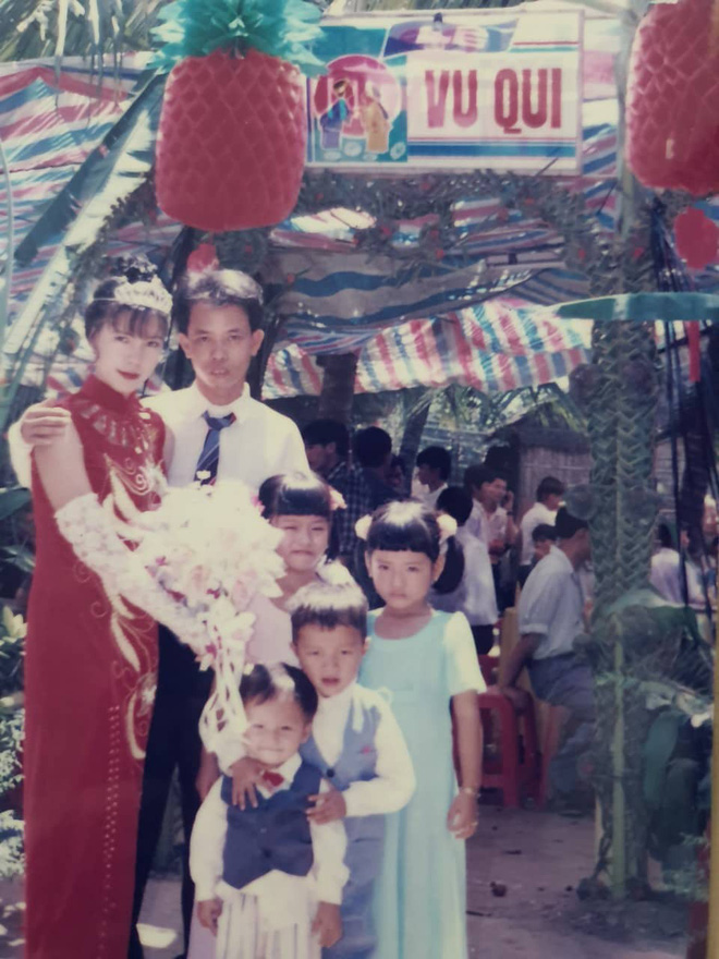 Nhà ông bà nội cũng rất tự hào vì khi ấy ba tự tổ chức đám cưới của mình, chẳng phải nhờ cậy gì cả. Hồi đó, tổ chức tiệc đến hơn 40 bàn, trong khi phần đa chỉ có khoảng mười mấy, hai chục bàn đó. Váy cưới thì mẹ lên tận Sài Gòn thuê chứ không mượn ở quê đâu. Mẹ mặc đến hơn 10 cái váy cưới và cả áo dài nữa.