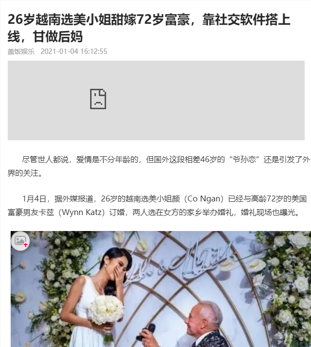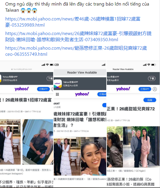 06/01/2021 00:56Chuyện tình yêu của cô gái Việt 26 tuổi yêu tỷ phú Mỹ 72 tuổi lên hẳn báo Trung Quốc, chính chủ cũng hoảng hốt vì những điều không ngờ!