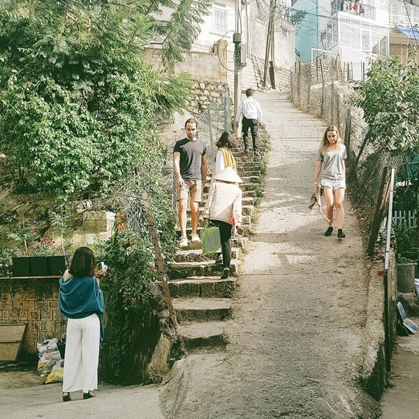 "Cả nhóm mình mất 15 phút mới ra khỏi con dốc này vì cứ đi một đoạn là nó cứ nghiêng đáng sợ thế nào ấy", bạn H.G thuật lại.