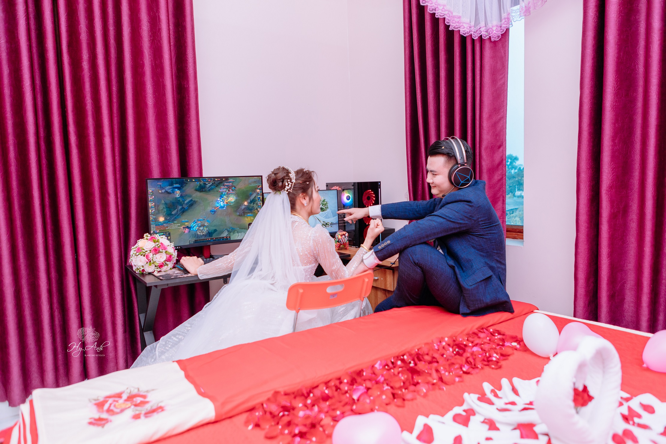 Khi có một bạn trai lên tận phòng gọi hai người xuống tiếp khách, thì cô dâu đeo tai nghe, mải chơi nên chẳng để ý. Còn chú rể quay ra đáp lời: ''Nhà bao việc đây này''. Vừa nói, anh vừa chỉ vợ cách "ra đòn'' cho nhân vật trong trận game của mình. Đồng thời cả 2 đang rất tự hào vì thắng trận.