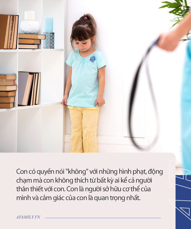 Con có quyền nói "không" với những hình phạt, động chạm mà con không thích từ bất kỳ ai kể cả người thân thiết với con. Con là người sở hữu cơ thể của mình và cảm giác của con là quan trọng nhất.