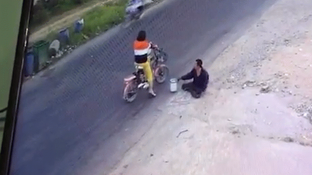 Theo hình ảnh ghi lại được cho thấy, nam thanh niên điều khiển xe máy đang lưu thông trên đường thì bất ngờ dừng xe ở một lối rẽ. Ngay sau đó, người này ra khỏi xe rồi ngồi xuống vỉa hè. Một lúc sau, hắn cầm theo một cái xô nhỏ, từ từ lết trên đường rồi xin tiền từng người đi qua.