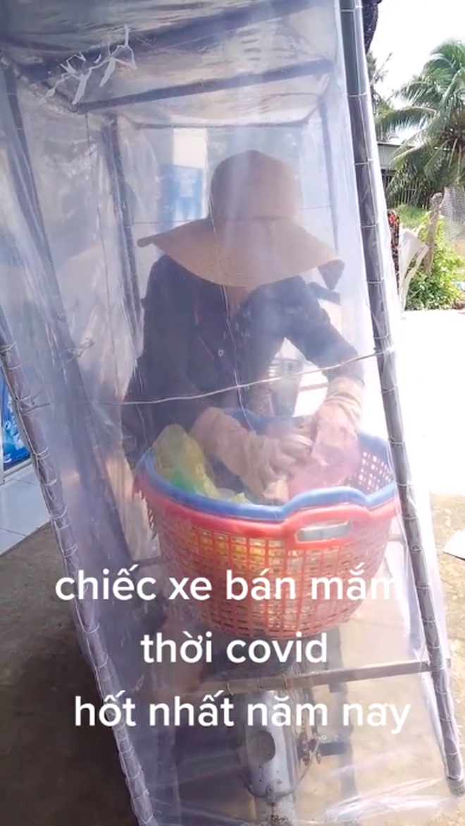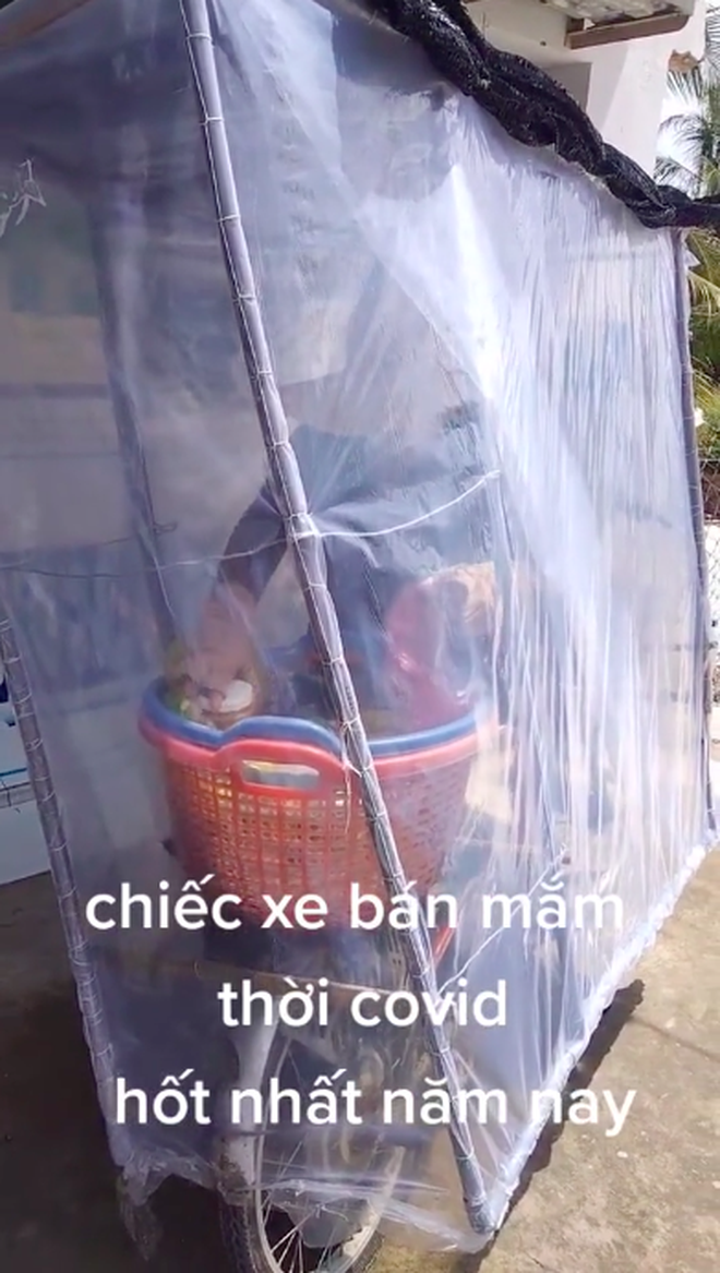 Như mới đây, người dùng TikTok được phen "cười ra nước mắt" khi thấy cảnh cô bán mắm… vác nguyên "cái nhà" trên con xe đạp điện của mình để phòng Covid.
