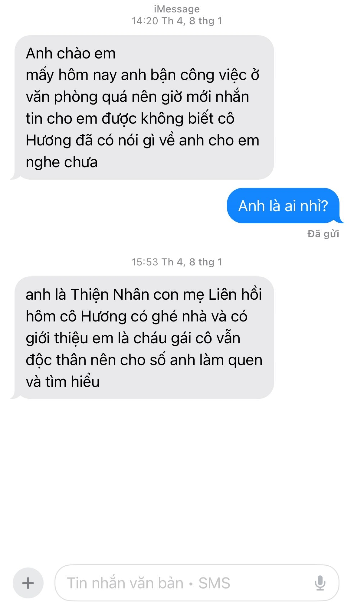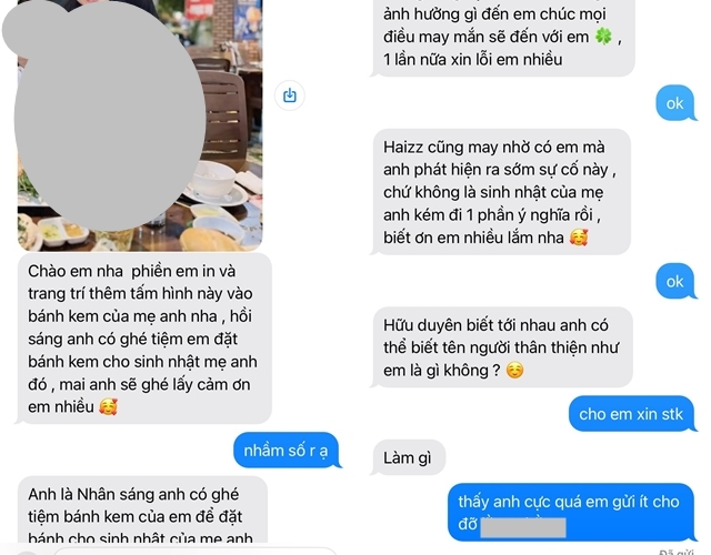“Tiện đây em là phụ nữ, em có thể tư vấn giúp anh được không? Vừa xong anh điện cho chị Hương và chị ấy có giúp anh 1 chuyện trong tình cảm riêng tư, hẹn chiều nay đi xem mặt 1 người mà chị giới thiệu cho anh. Em là phụ nữ, em có thể tư vấn giúp anh là phụ nữ thích gì khi đi gặp mặt lần đầu được không em. Anh muốn tặng bạn ấy 1 món quà nhân buổi gặp mặt đầu tiên này…”, người đàn ông nhắn.