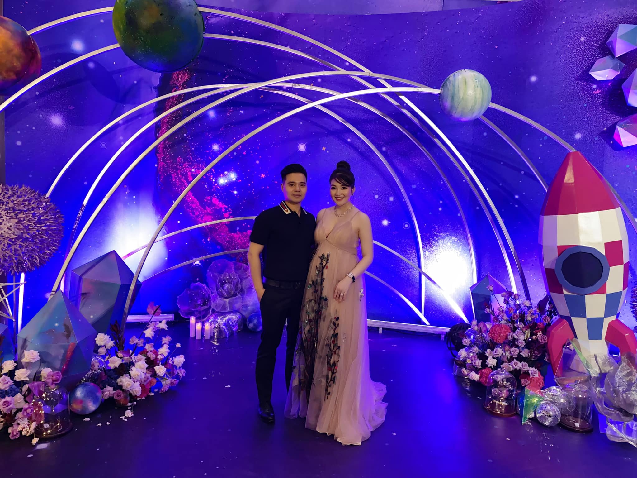 Từ vài ngày trước, những người yêu mến theo dõi Thu Hương đã vô cùng tò mò khi thấy bà mẹ trẻ chia sẻ hình ảnh về sân khấu bữa tiệc màu hồng cực hoành tráng, thuê cả dàn nhân viên tới dựng cổng chào, bóng bay. Hôm nay Thu Hương mới công khai bữa tiệc, đó quả thực là party tròn 3 tháng tuổi của bé Gia Hân.